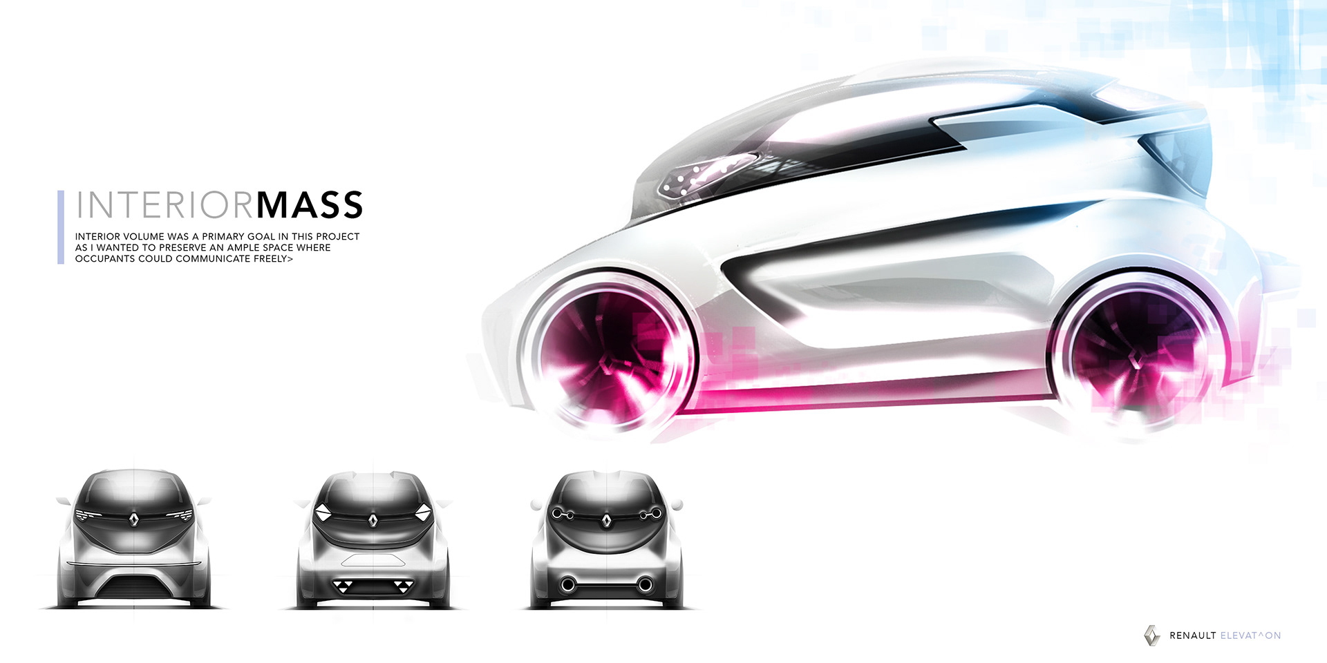 Vehicle exploration of a city car with vertical orientation to optimize space in a metropolitan area.
